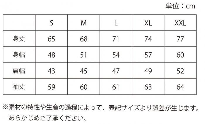 S → 身丈65 身幅48  肩幅43 袖丈59 (cm)
